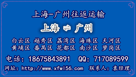 ? ? ? ?上海到廣州物流上海鑫富物流有限公司為廣大新老客戶提供優質上海到廣州物流專線及配送服務,歡迎來電咨詢,電話:020-87461290 ,手機:18675843891 ,QQ:717089599 聯系人:袁經理,鑫富物流公司在上海周邊城市及上海奉賢區,盧灣區, 閘北區, 嘉定區, 靜安區, 虹口區 ,金山區,徐匯區 ,楊浦區 ,松江區,崇明縣,黃浦區,盧灣區貨多都可以上門收貨,送至以下地點:廣州白云區,荔灣區,海珠區,天河區,越秀區,黃埔區,番禺區,花都區,南沙區,蘿崗區,增城市,從化市,鑫富國家AAA物流企業–貨運一站式解決方案。